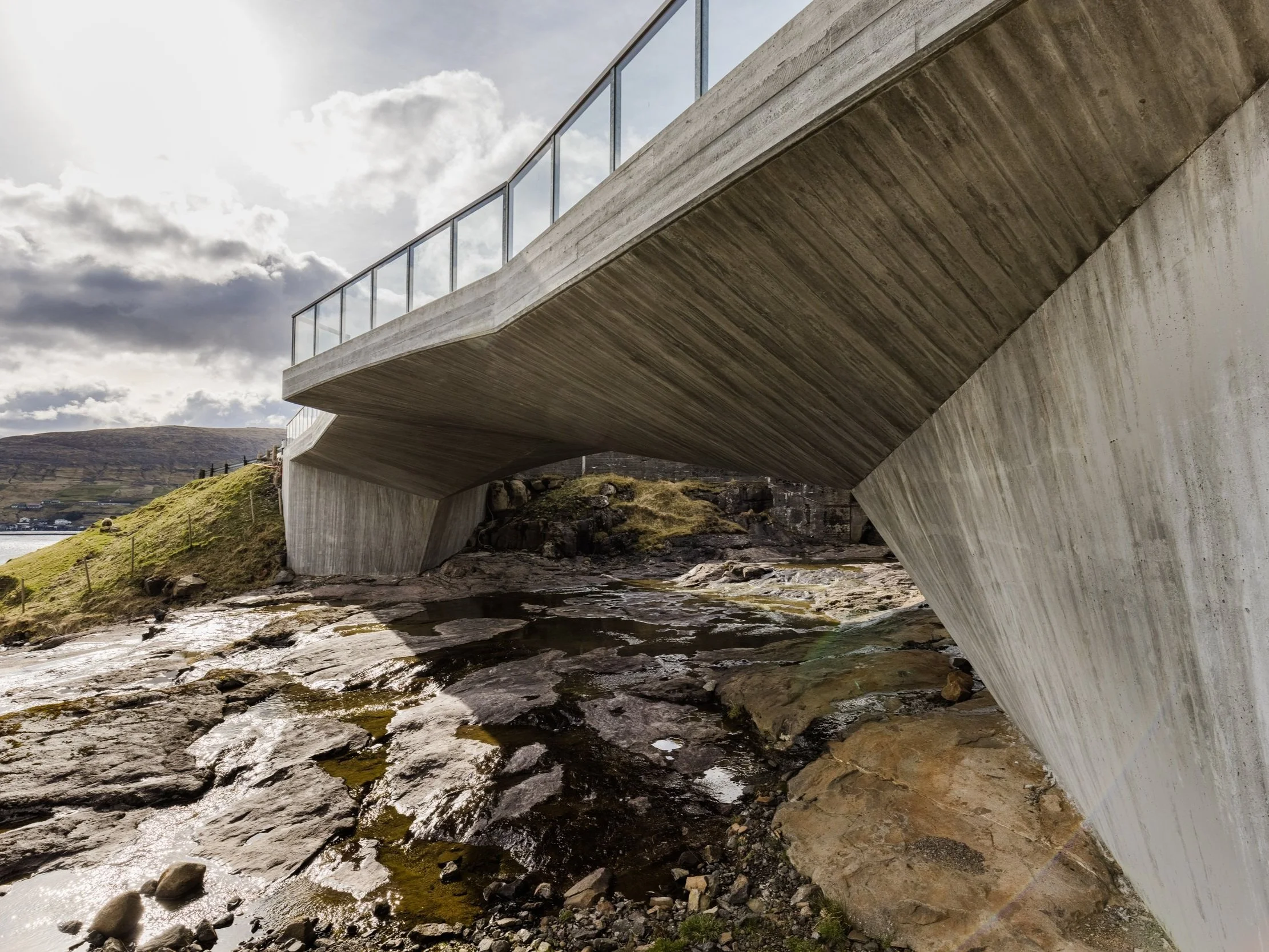 Geometriin er eins um miðásan báðar vegir, ið gevur ein boga, sum nátúrligt upptekur kreftirnar og soleiðis smelta konstruktión og estetikkur saman.